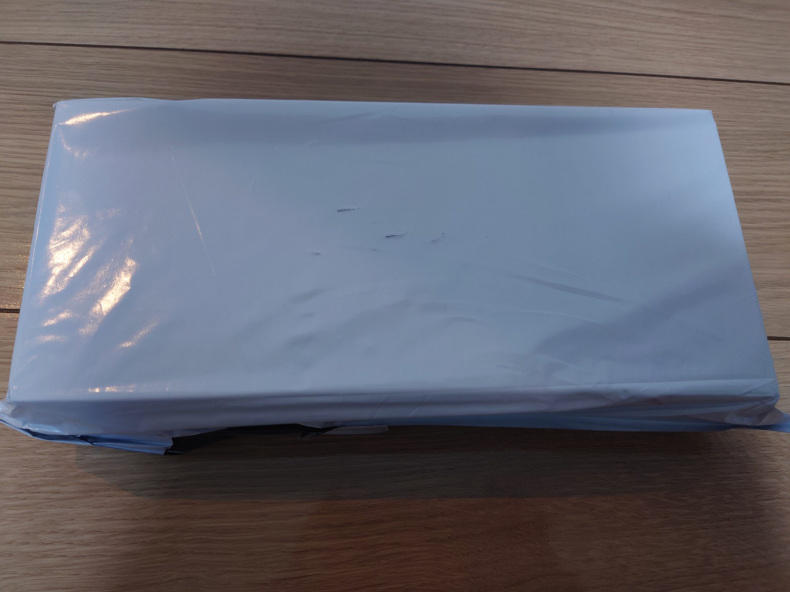 画像では見にくいですが、箱の周りには薄いビニール膜で梱包されており、いたずら防止、開封の確認ができるようになっています。