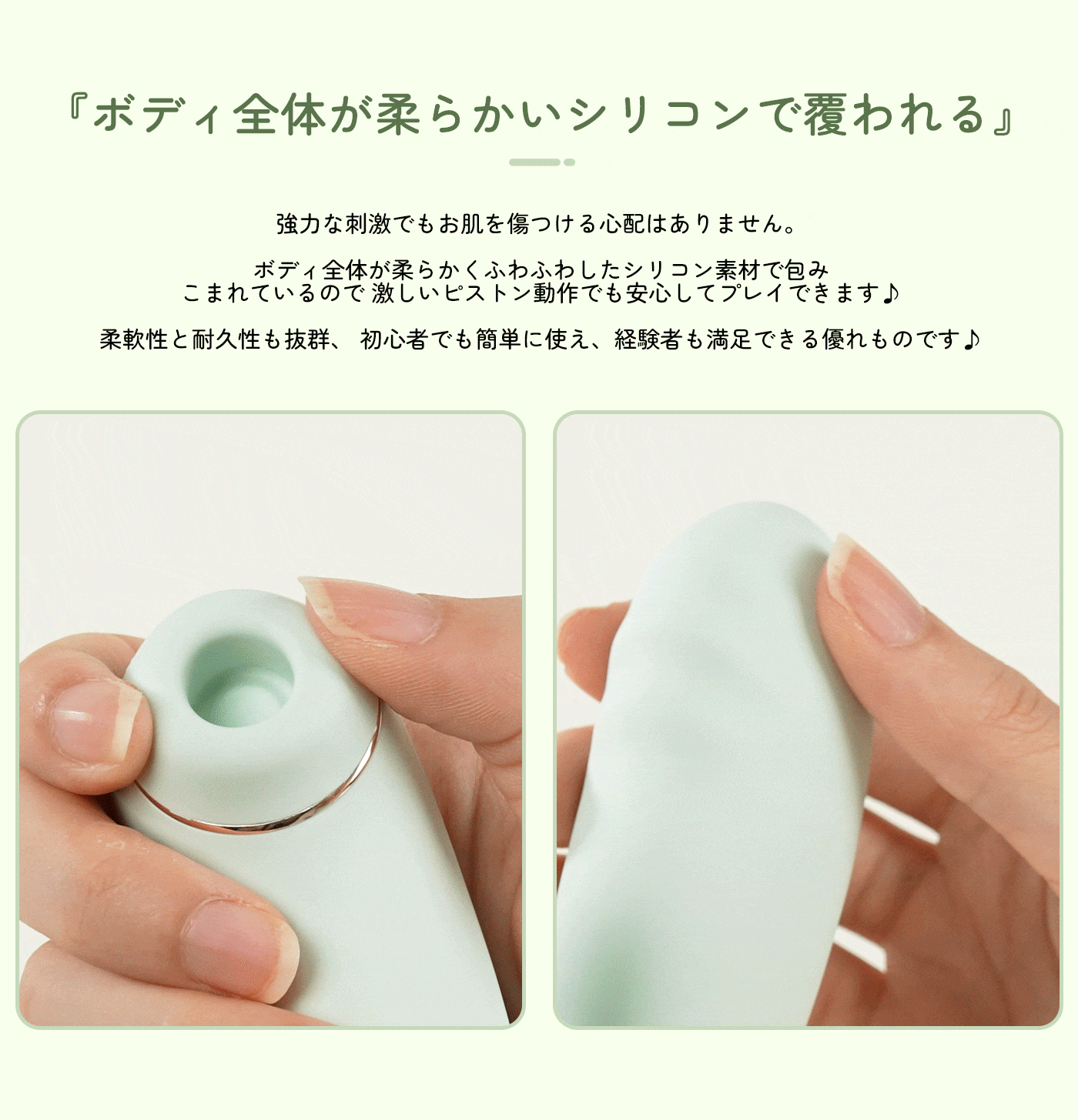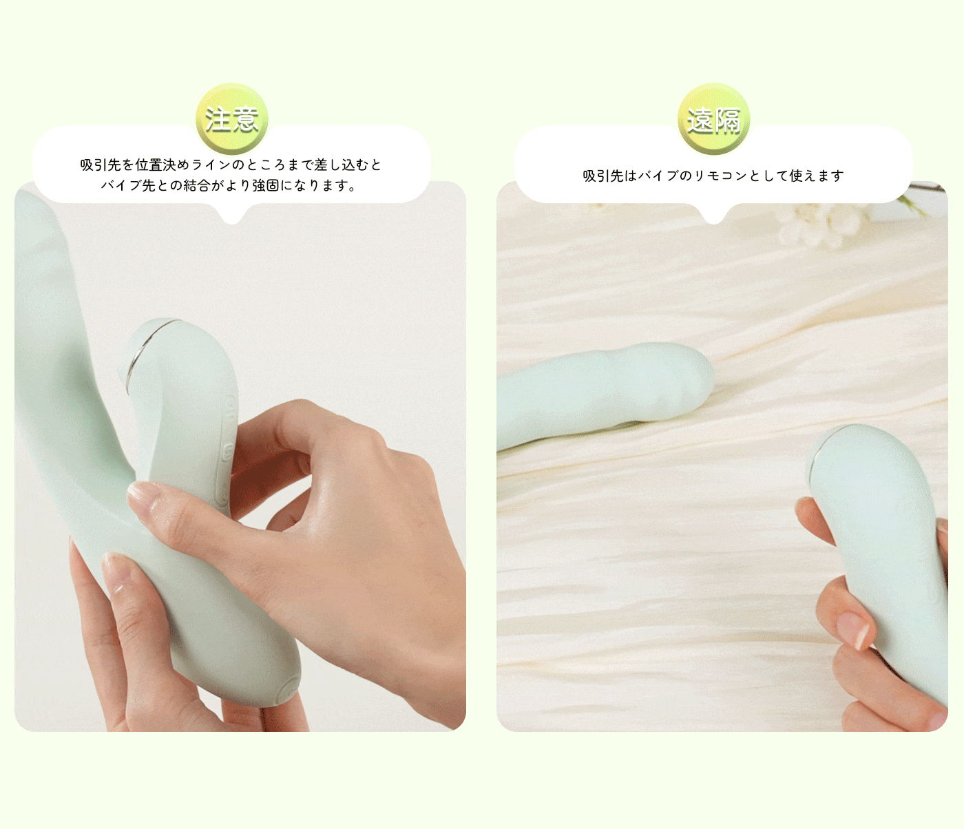 もちろん女性が一人で使うときも、吸引部だけを持って気軽に楽しむことができるので“単独プレイの自由度”も非常に高いのが魅力です。