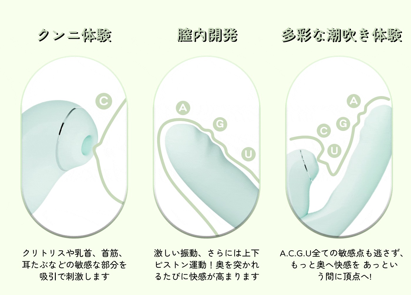 これらを同時に、あるいは組み合わせて使うことで、クリトリスとGスポットを同時に攻めるまさに“フルコース快感”が完成します。