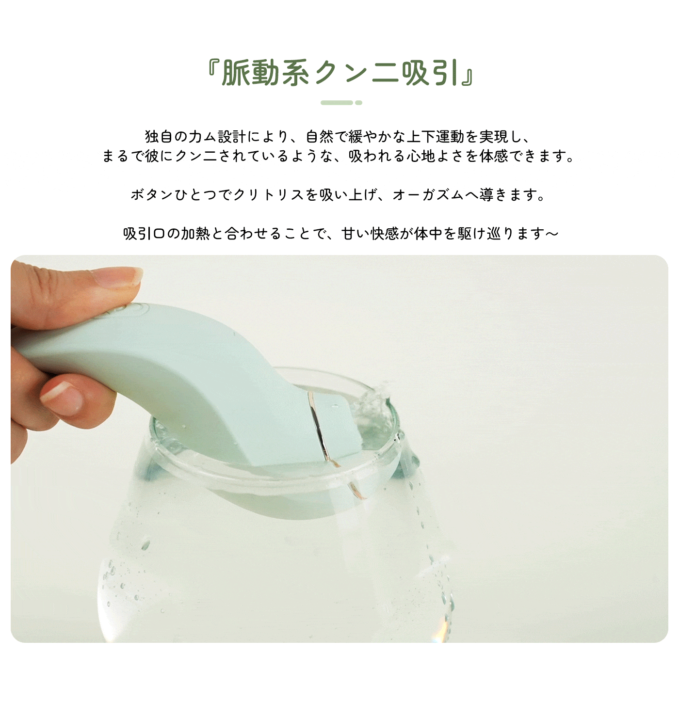 - 吸引:脈動するクンニ吸引モードで、クリトリスをやさしく吸い上げます。