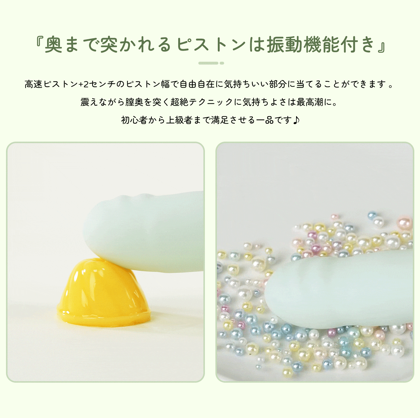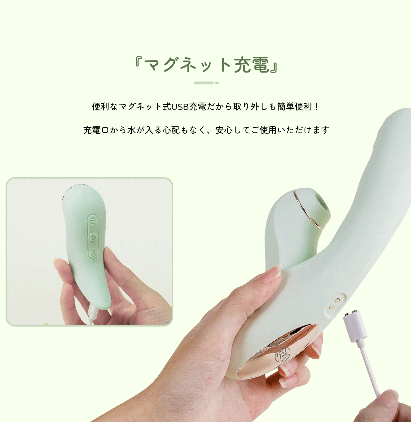 脈動系の吸引でクリトリスを優しく吸い上げながら、最大4cmまで伸縮するピストンがGスポットを的確に刺激します。