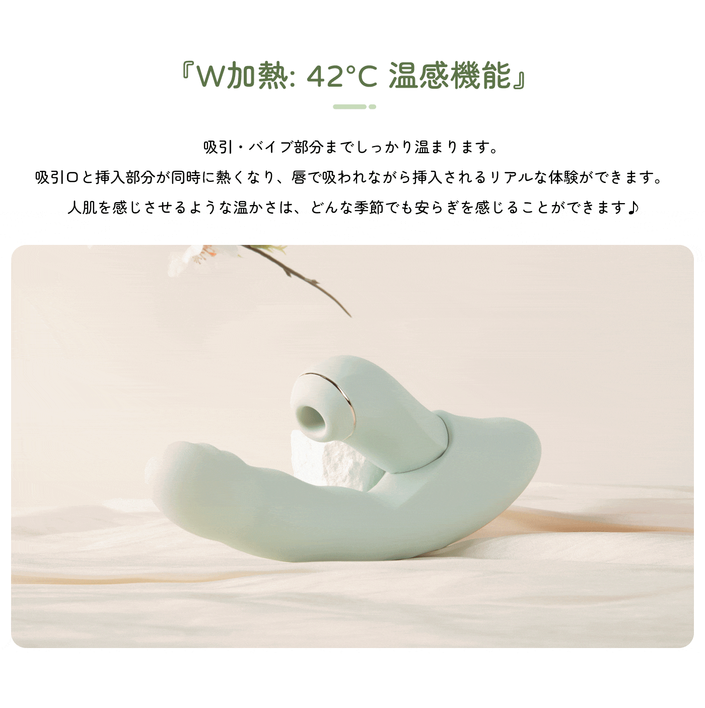 まるでオーケストラのように複雑な刺激が楽しめます。 - 温感:吸引口と挿入部がじんわり温まり、体温に近いぬくもりを再現。