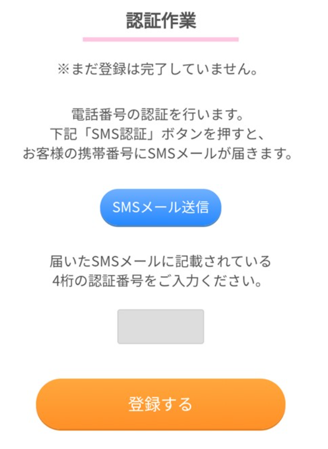 次に「電話番号認証」をして登録完了です。