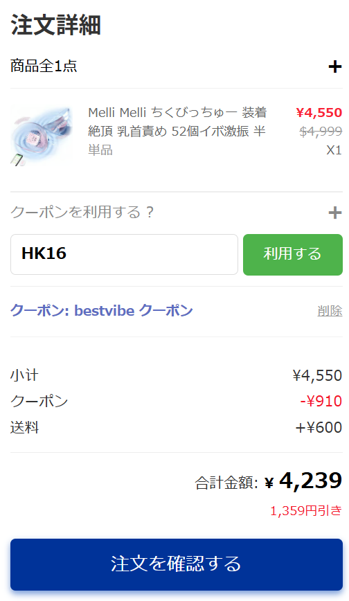 こちらのクーポンはBestvibeのすべての商品に適用されるため、当サイト経由ならクーポンを使ってお好きなアダルトグッズをお買い得価格で手に入ります。