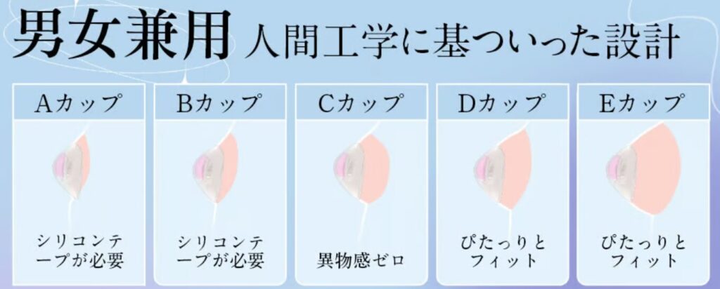 カップは半曲面デザインで、男女問わずフィットする柔軟性があります。