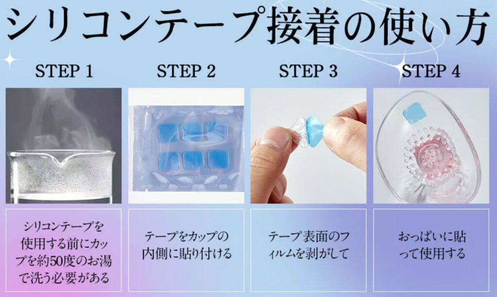 サイズ調整が不要なので、カップを胸に当ててテープで固定するだけで誰でも手軽に使い始められるのも魅力ですね。