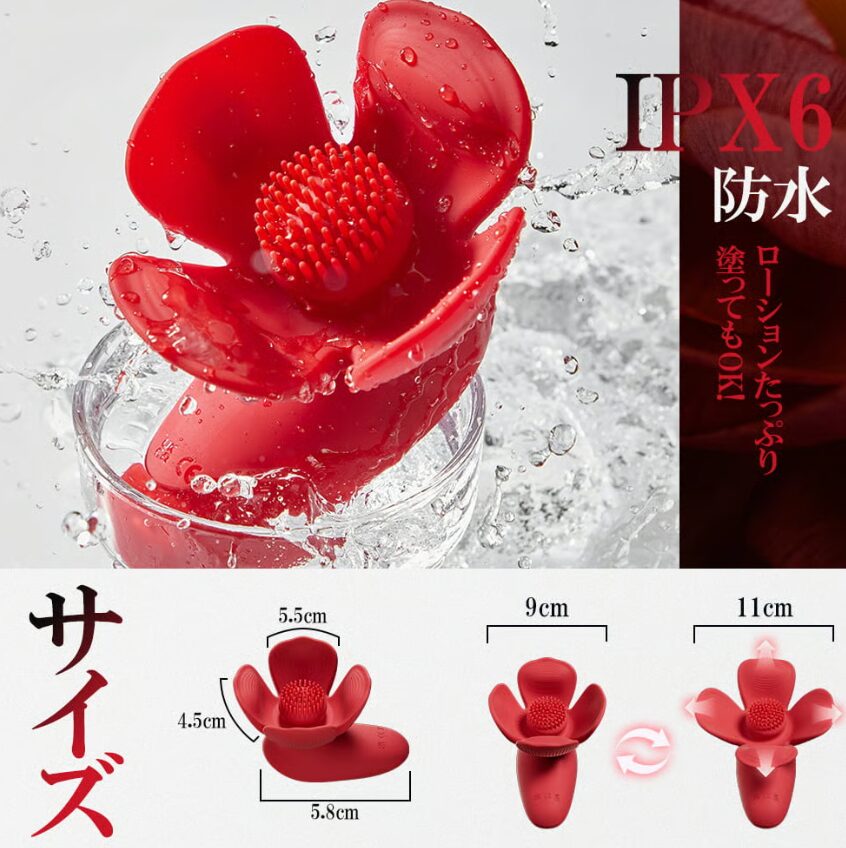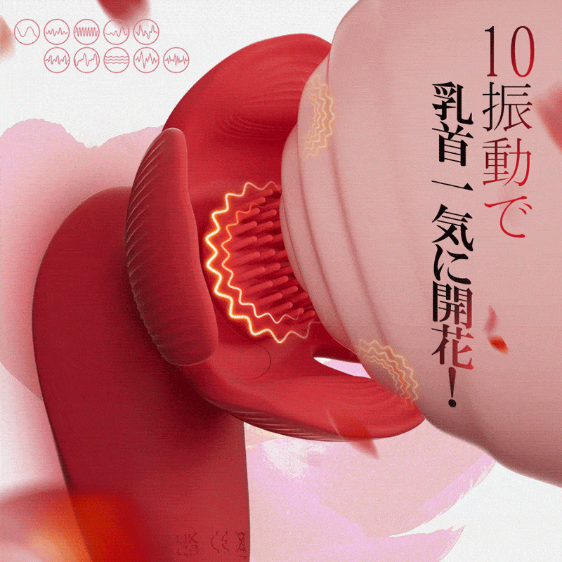 「ぱふぱふ」と動く花びらが乳房をやさしくタッピングし、真ん中の乳首ヒットポイントでさまざまな振動で快楽に誘います。