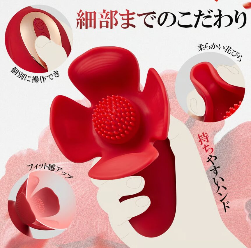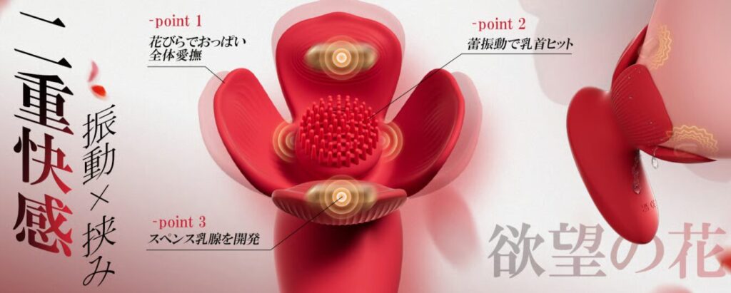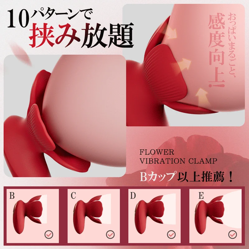 胸全体を包み込む花びら形状と、10種類の挟み×10種類の振動パターン。
