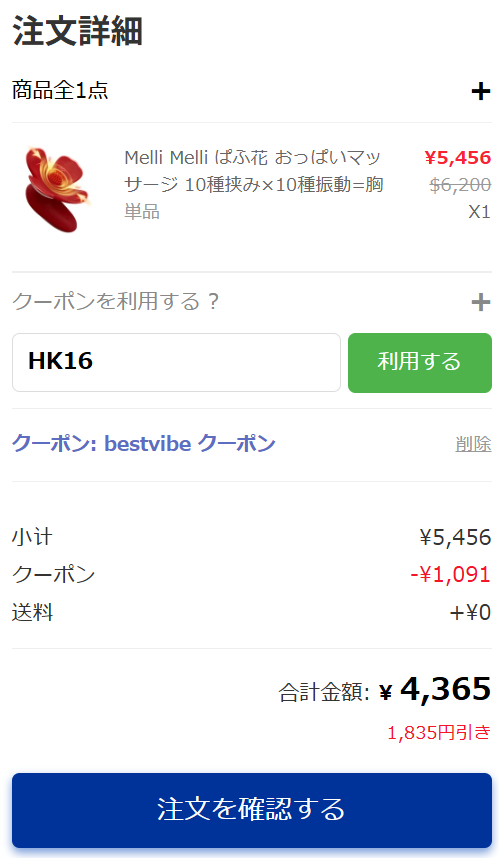 こちらのクーポンはBestvibeのすべての商品に適用されるため、当サイト経由ならクーポンを使ってお好きなアダルトグッズをお買い得価格で手に入ります。