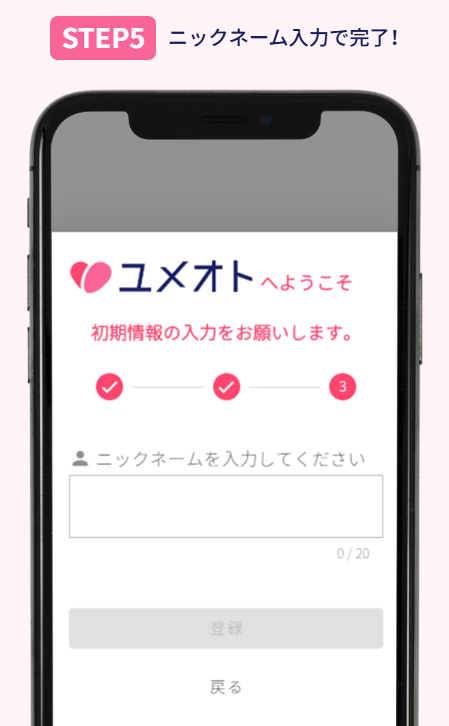 ユメオトの登録は、まさに「シンプル・スピーディ・安全」。